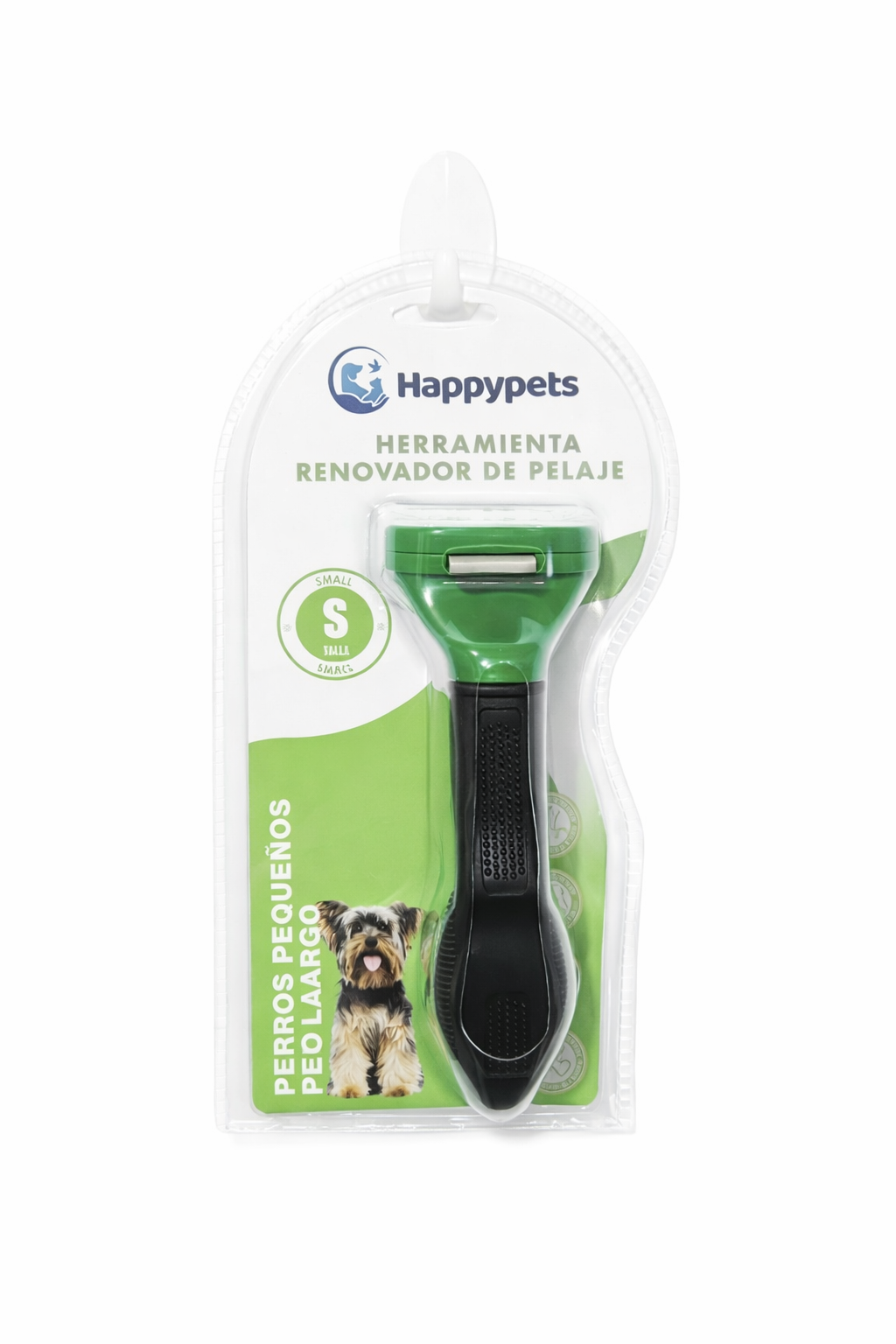 Mantén el pelaje de tu mascota limpio, saludable y libre de pelo suelto con el Renovador de Pelaje Happypets, una herramienta profesional diseñada para eliminar eficazmente el pelo muerto en perros de pelo corto, medio y largo, especialmente aquellos con doble capa.
