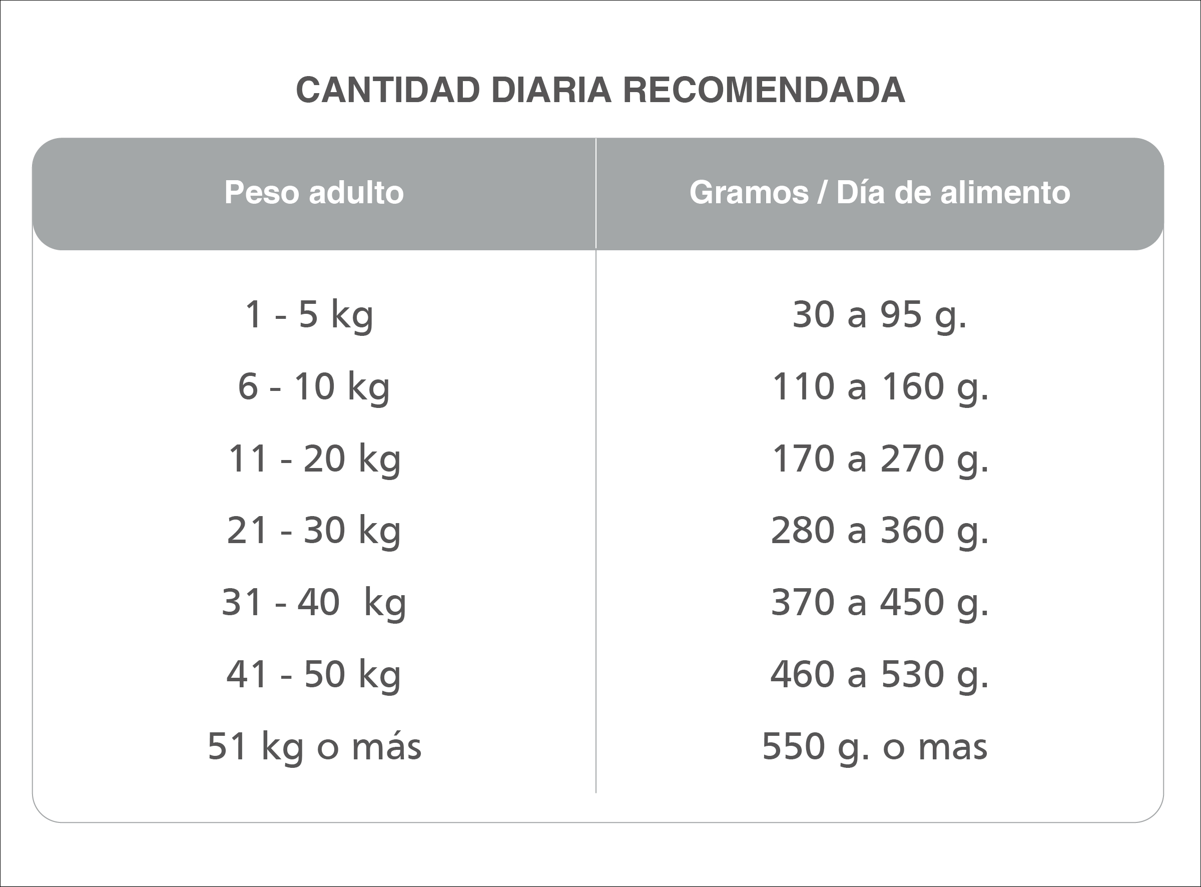 Harina de cordero, arroz integral, arveja, gluten de maíz, germen de maíz desgrasado, grasa animal (pollo), aceite de salmón (fuente de omega 3 y 6), hidrolizado proteico de menudencias vacunas, porcinas y aviares, pulpa de remolacha (fuente de fructo-oligosacáridos – FOS), levadura de cerveza, zeolita, sal, fuente de fibra insoluble (celulosa), extracto de yucca schidigera, manano-oligosacáridos – MOS, nucleótidos de levadura, carbonato de calcio, metionina, propionato de calcio, ácido propiónico, pirofosfato ácido de sodio, glucosamina, condroitin sulfato, colágeno hidrolizado, L-carnitina, antioxidantes naturales: extracto de romero, vitamina C, betacaroteno, ácido cítrico, tocoferoles, licopeno, luteína, polifenoles, taurina, vitaminas: A, D3, E, K, B1, B2, B6, B12, ácido fólico, ácido nicotínico, ácido pantoténico, biotina, colina, minerales: zinc, hierro, cobre, yodo, manganeso y selenio.